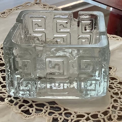 Riihimäen lasin tuhkakuppi, halkaisija 11cm, korkeus 4cm. Vain nouto.