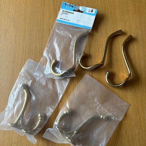 4 kpl messinkisiä koukkuja