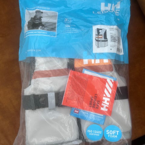 Edessä vetoketju ja säätöremmi soljella. Soveltuvat vesillä liikkumiseen ja muuhun vesiturvallisuuteen. Yhteishinta kolmelle liiville.