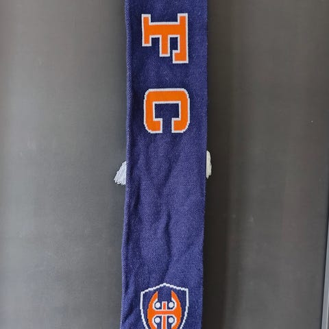 Tappara huivi. Sininen-oranssi kannatushuivi, jossa Tapparan logo ja teksti. Päissä oranssit hapsut. Sopii käytettäväksi esimerkiksi jääkiekkopelissä tai muussa kannatustilanteessa.