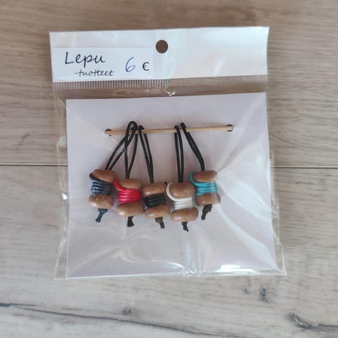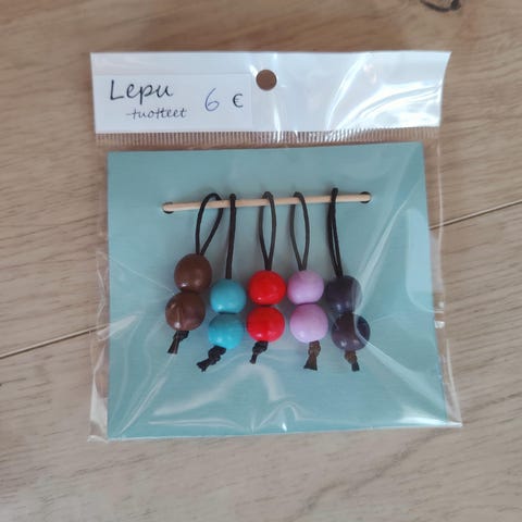 Käsityönä valmistetut silmukkamerkit. Materiaalina nahka ja 925 hopea.