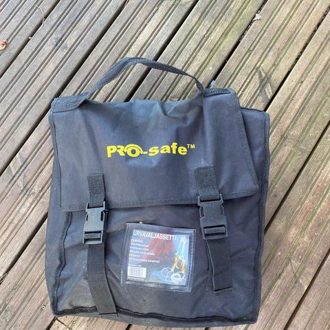 Ok kunnossa olevat turvavaljaat ja 15m turvaköysi nykäyksenvaimentimella ja turvahaalla. Kiinnitys-sakkeli kaupan päälle. Myös nouto ok.