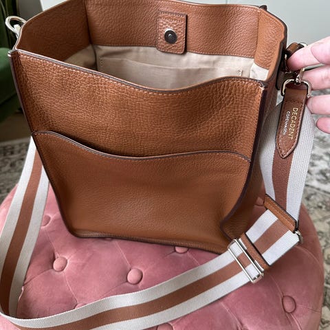 Uusi, konjakinvärinen 100% nahkaa. Olkalaukku/projektilaukku neulojille. (Ovh. n. 245€). Voin tarvittaessa lähettää.