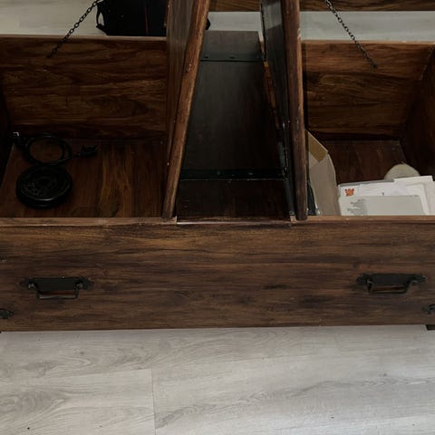 Myydään Ratian saaristo sarjan arkku. Päältä aukeava. Kannessa eniten kulumaa pienellä huolenpidolla varmasti salonki kelpoinen sekä yksi päälli rimoista uudelleen ruuvattu