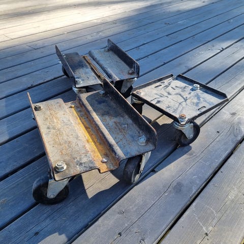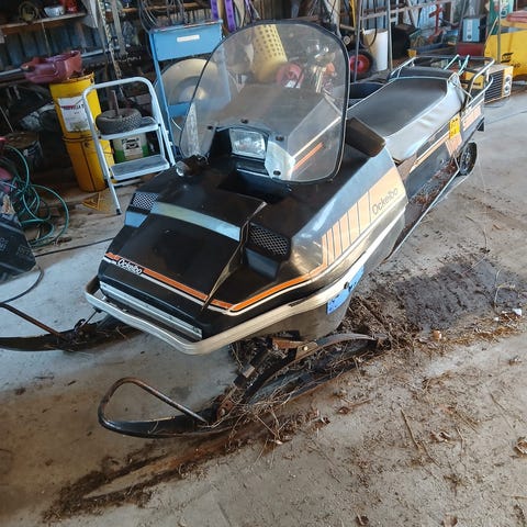 Annetaan peräkärryn pohjalla ollut moottorikelkan telamaton pala. Pituus 240cm.