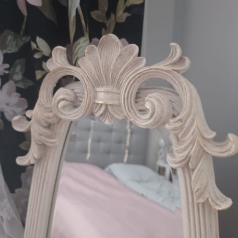 Tutustu tyylikkääseen eleganssiimme suorakulmaisella peilillämme, täydellisellä yhdistelmällä klassista charmia ja modernia yksinkertaisuutta. Suuret mittansa 70x160 cm, tämä peili tarjoaa käytännöllisen ja koristeellisen toiminnon kotiisi. Valkoinen kehys on upeasti koristeltu yksityiskohdilla, jotka tuovat mieleen menneitä aikoja, samalla kun puhdas muoto pitää suunnittelun ajankohtaisena ja helposti sovitettavana muuhun sisustukseesi.