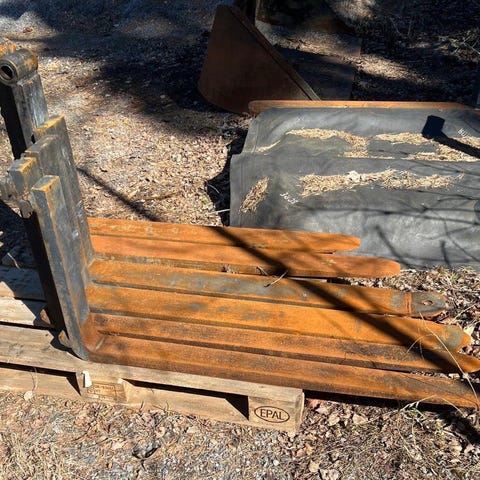 Pieneen traktoriin sopivat trukkipiikit, haarukoitten leveys keskeltä keskelle n. 60 cm ja pituus n. 80cm