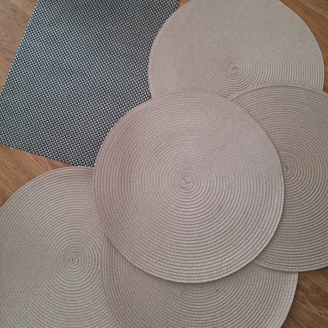 6 kpl hiukan kiiltävää kangasta olevat puhtaat pöytätabletit. Koko 43,5 cm x 32 cm. Eläintalous. Nouto, käteinen/mobilepay.