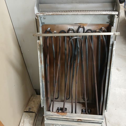 Toimiva Helo sähkökiuas kivien kera. Vapaasti seisova malli, musta ulkokuori ja yläosassa kivipesä kiuaskiville. Mekaaniset säätimet alaosassa lämpötilan ja ajan säätöön. Soveltuu saunan lämmittämiseen sähköliitännällä varustetussa tilassa valmistajan ohjeiden mukaisesti.