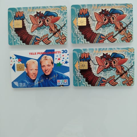 Myydään neljä puhelukorttia. Yksitellen 2 e / kpl tai kaikki neljä kerralla yht. 5 e