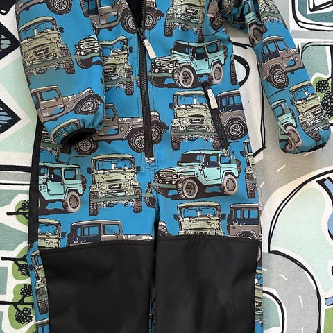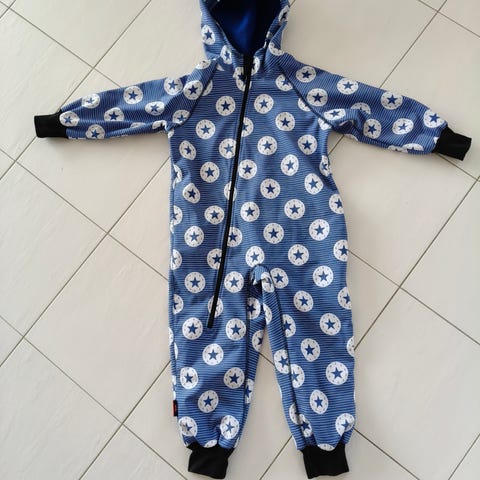 Jonathan softshell-haalari 110. Hyvä käytetty kunto. Hieman käytön jälkeä (lähinnä haaleaa tummaa) polvissa ja vähän myös pepun kohdalla.