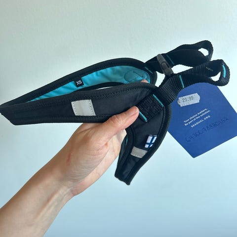 Käyttämättömät valjaat koiralle. Mustat, pehmustetut valjaat, joissa on heijastavia yksityiskohtia näkyvyyden parantamiseksi. Valjaissa on pikalukko kiinnitystä varten. Soveltuvat koiran ulkoilutukseen ja lenkkeilyyn. Koko M.