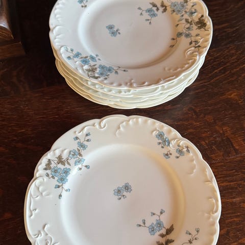 Myydään kaunis setti vanhoja posliinilautasia (6 kpl), valmistettu Kornilovin tehtaalla Pietarissa noin 1880–1910.