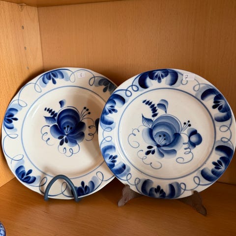 Antiikkiset posliinilautaset 6 kpl, Venäjä (Kornilov), 1800–1900-luku