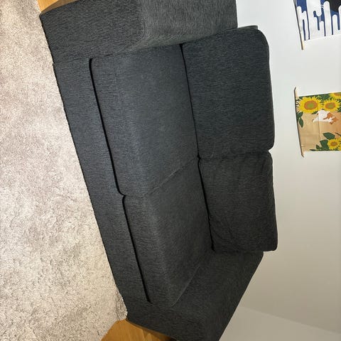 Erittäin hyväkuntoinen pieni harmaa sohva. Irroitettavat tyynynpäälliset. Nouto Pasilasta.