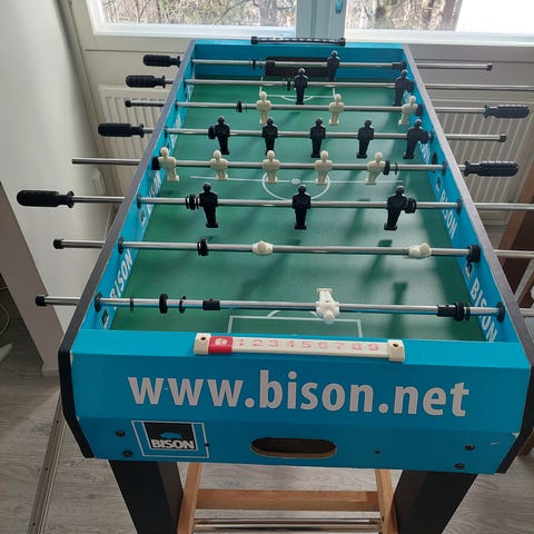 Playtive kompakti pöytäjalkapallopeli. Mukana kaksi muovista minijalkapalloa.
