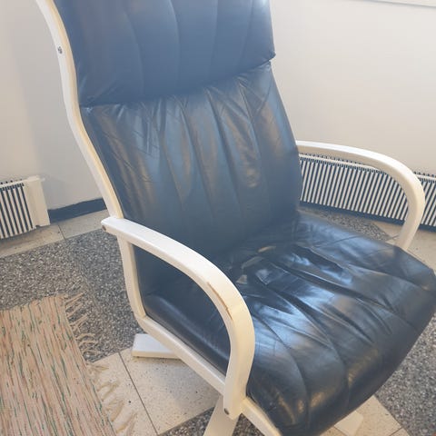 Hyväkuntoinen vintage nojatuoli. Päällinen vähän kulunut mutta verhoilulla saa helposti vaihdettua uuden päällisen jos haluaa.