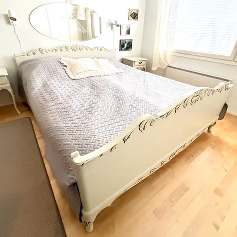Hyväkuntoinen.Sängyn mitat ulkomittoja.Patjat sisältyy. Kuvan peite ei kuulu hintaan.