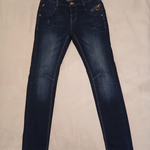 Mos Mosh pestyn mustan väriset pillifarkut. Koko S, vyötärökoko W27. Väri kulutettu musta / erittäin tumma harmaanmusta. Viisitaskuinen malli, edessä ja takana taskut, joista yhdessä vetoketjuyksityiskohta. Nätit paljettisomisteet edessä ja takana taskujen yhteydessä.