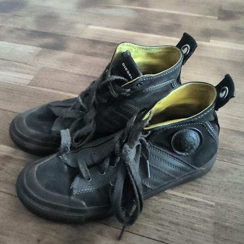 Dieselin tennarit, koko 40. Matala malli nauhoituksella. Päällinen farkkukangasta, valkoinen kumipohja ja kuminen kärki. Sopivat arkikäyttöön ja vapaa-aikaan.