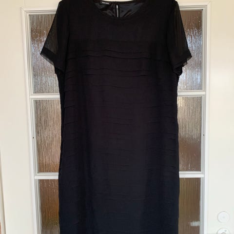 Gerry Weber mekko, koko XL. Musta puuvillamekko, jossa edessä kukkakirjailu rinnuksen kohdalla. Puolipitkät hihat ja suora, väljä malli. Helmassa sivuhalkio. Sopii arki- ja vapaa-ajan käyttöön.