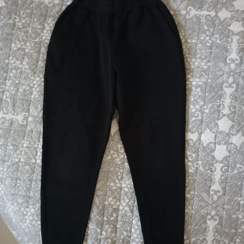 Aarre naisten housut, koko S. Väri musta. Materiaali puuvillaa. Housuissa leveähkö lahje ja täyspitkä malli. Kankaassa kohokuvioinen pallokuviointi. Sopivat arki- ja vapaa-ajan käyttöön.