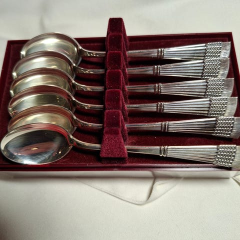 Hopeiset kahvilusikat, hopeiset aterimet, Tähkäsarjan kahvilusikat, tähkäsarjan kakkulapio, Chippendale