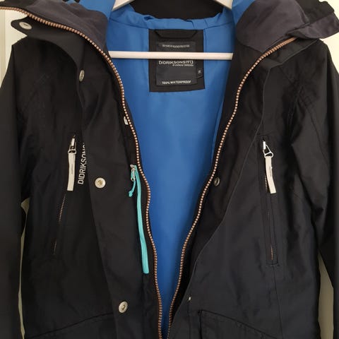 Välikausitakki ja talvitakki, koko 36, väri musta. Muuten hyväkuntoisia, talvitakin vasemman taskun nappi irronnut, ja teddyvuori teddyvuoren näköinen, välikausitakissa oikean taskun vuori ommeltu. Molemmat pitävät vettä ja muuten siistit takit.