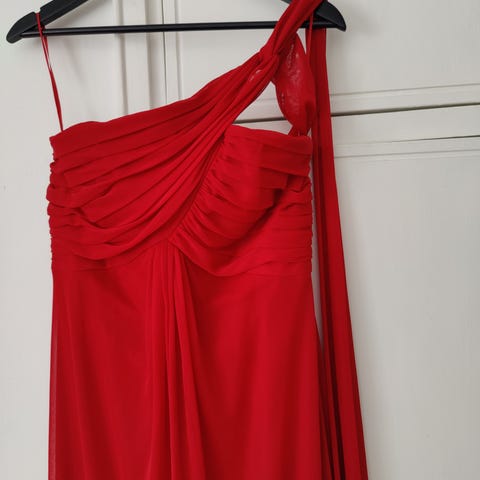 Zazabella ilta- tai juhlapuku, koko M/38. Yläosa on istuva ja olkaimellinen. Selkäosa on avonainen. Mukana erillinen kiinnitettävä kangaskappale avonaiseen selkäosaan.