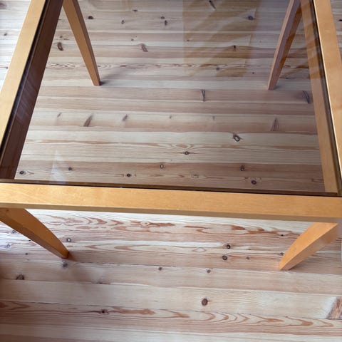 Maskun Edmonton tammi sohvapöytä. Kaunis kalanruotokuviointi. Käyttämätön, ainoastaan kasattu kuvaa varten.