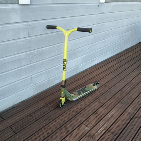 Skateprolta tilattu custom skuutti, potkulaudalla on potkuteltu yksi kesä. Toimii hyvin ja kaikki kunnossa.