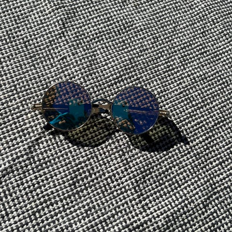Roosan värinen aurinkolippis ja silmälasikotelo
