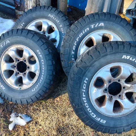 Myydään pajeron vanteet. Kaupan päälle kohtalaiset goodyearit