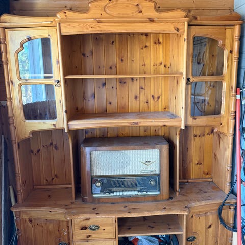 Vanhat tv ja radio. Kylmässä säilytetty, likaiset mutta ihan kohtuullisessa kunnossa. Toimivuudesta ei tietoa. Kaapin ovet toimii ja avain tallessa.