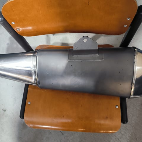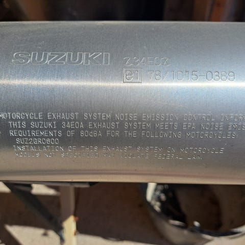 Suzuki X15H0 alkuperäinen äänenvaimennin. Hyvässä kunnossa, ei reikiä tai vaurioita. Normaaleja käytön jälkiä, täysin toimiva. Sopii Suzuki SUZ2GR1300 -malliin ja mahdollisesti muihin. Täyttää melunormit (80 dBA).