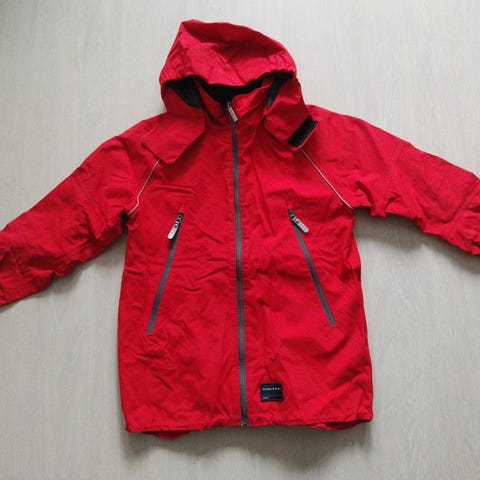 Polarn och pyret vedenpitävä välikausitakki / kuoritakki koko 146 cm. Takki on täysin ehjä, ja vetoketju toimii hyvin. Paikoin kankaassa näkyy hankausjälkeä, mutta se erottuu vain hyvin läheltä katsottaessa. Yleisilmeeltä mielestäni erittäin siisti takki.