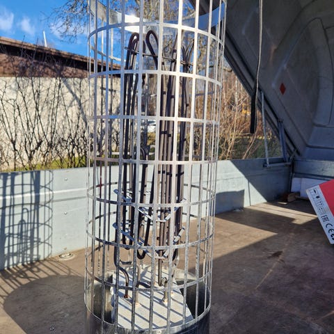 Harvia Vega sähkökiuas, etupaneeli ruostumatonta terästä. Kiukaassa mekaaniset säätimet etupuolella lämpötilan ja ajastuksen säätöön. Yläosassa vastukset ja kivipesä saunankiviä varten. Sopii seinäkiinnitteisenä pieneen tai keskikokoiseen saunaan, kun teholuokka valitaan saunan koon mukaan. Virtakaapeli ja liitäntäjohdot näkyvissä, kiuas vaatii sähköasentajan tekemän kytkennän. Kiuas on tarkoitettu sisäsaunan lämmittämiseen kuivissa tiloissa valmistajan ohjeiden mukaisesti.