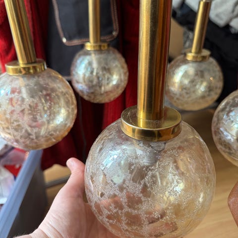 Vanha kattovalaisin maalattua lasia. Merkki tai alkuperä ei tiedossa. Halkaisija n. 11 cm.
