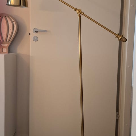 Messinkirunkoinen lattiavalaisin harmaalla varjostimella