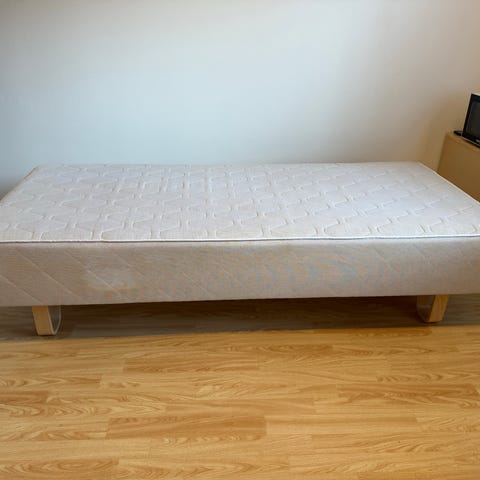 Yhden hengen sänky, hyvässä kunnossa. Patjan koko 80x200x20. Yksi lauta on rikki, voidaan vaihtaa tarvittaessa.