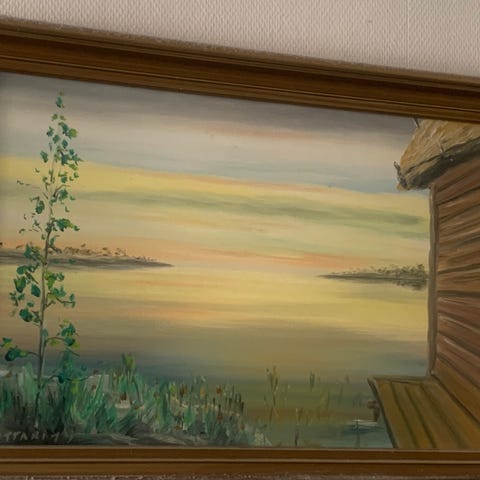Maalaus puukehyksissä.