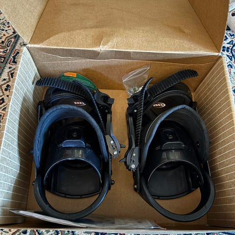 Atomic lumilautasiteet. Väri musta–valkoinen. Takakappaleessa Atomic-logo ja säädettävät remmit jalkaterän ja nilkan päällä. Sopivat käytettäväksi lumilaudan kanssa yleiseen lasketteluun. Koko- ja sukupuolitietoja ei ole ilmoitettu.