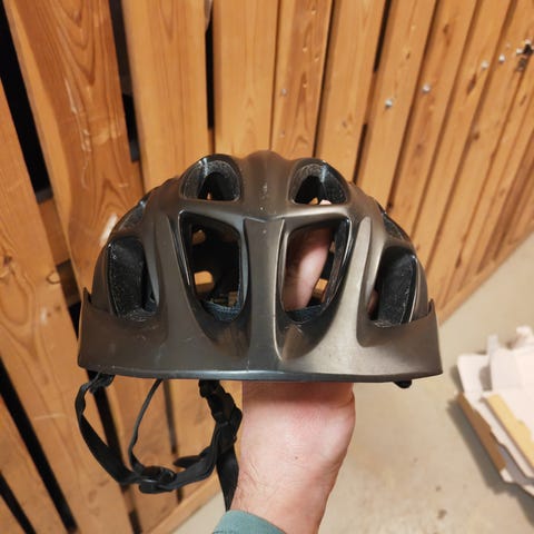 pyöräilykypärä, koko 54–61 cm (M). Väri musta/harmaa. Kypärässä on useita ilmanvaihtoaukkoja, säädettävä leukahihna sekä takaa säädettävä kiristyspanta istuvuuden hienosäätöön.