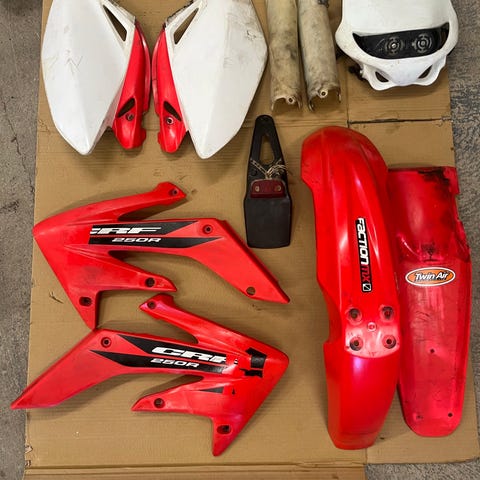 Gilera ja Yamaha WR katteita sekä tangon osia.