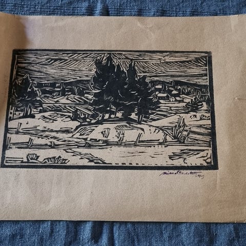 Myydään Mikko Carlstedtin alkuperäinen puupiirros (signeerattu) vuodelta 1919