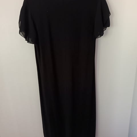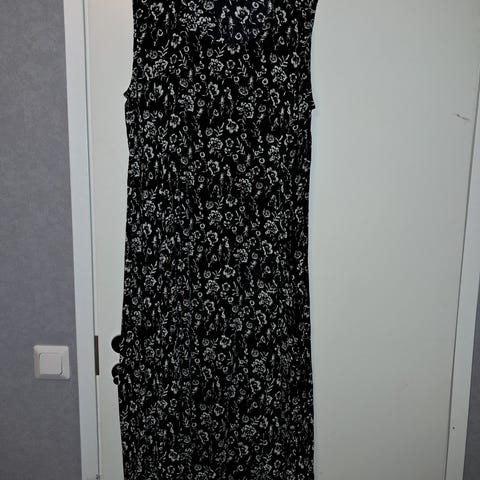 Mekossa on pitkät hihat ja V-pääntie sekä kerroksittain poimutettu helma. Väljä leikkaus, levenevä helma. Kuminauhat hihansuissa.