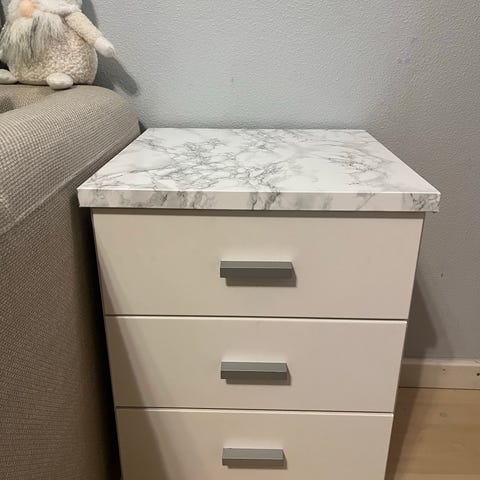 Yöpöytä, jossa laatikko. Hyvässä kunnossa. Pari pientä kolhua laatikossa.