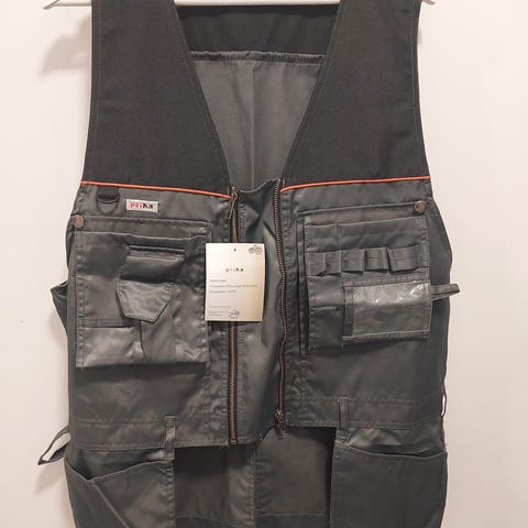 Käyttämätön timpurin liivi riipputaskuilla kokoa XXL.