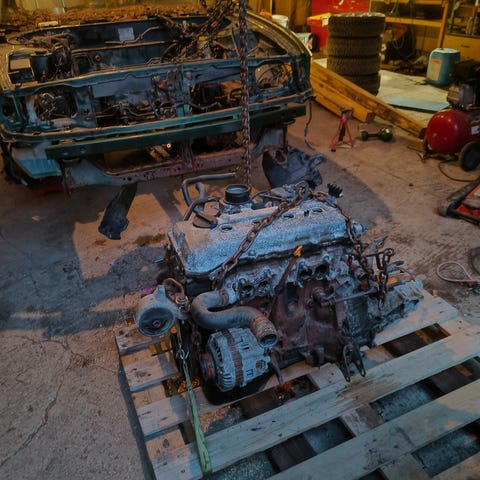 Piti itse kunnostaa ja laittaa omaan autoon, mutta muut hommat menivät edelle ja puskurit jäivät lojumaan ylimääräiseksi. Takapuskurista puutuu palanen ja etupuskuri halki muutamasta kohdasta. Siitä jollekkin, joka jaksaa parsia kasaan hienot puskurit almeraan.