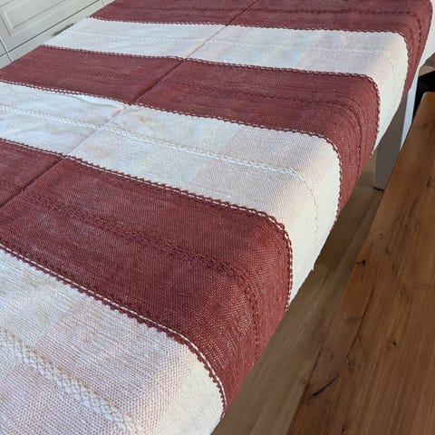 Poppanaliina 114 cm x 47 cm. Ihana ja hyvin kudottu.